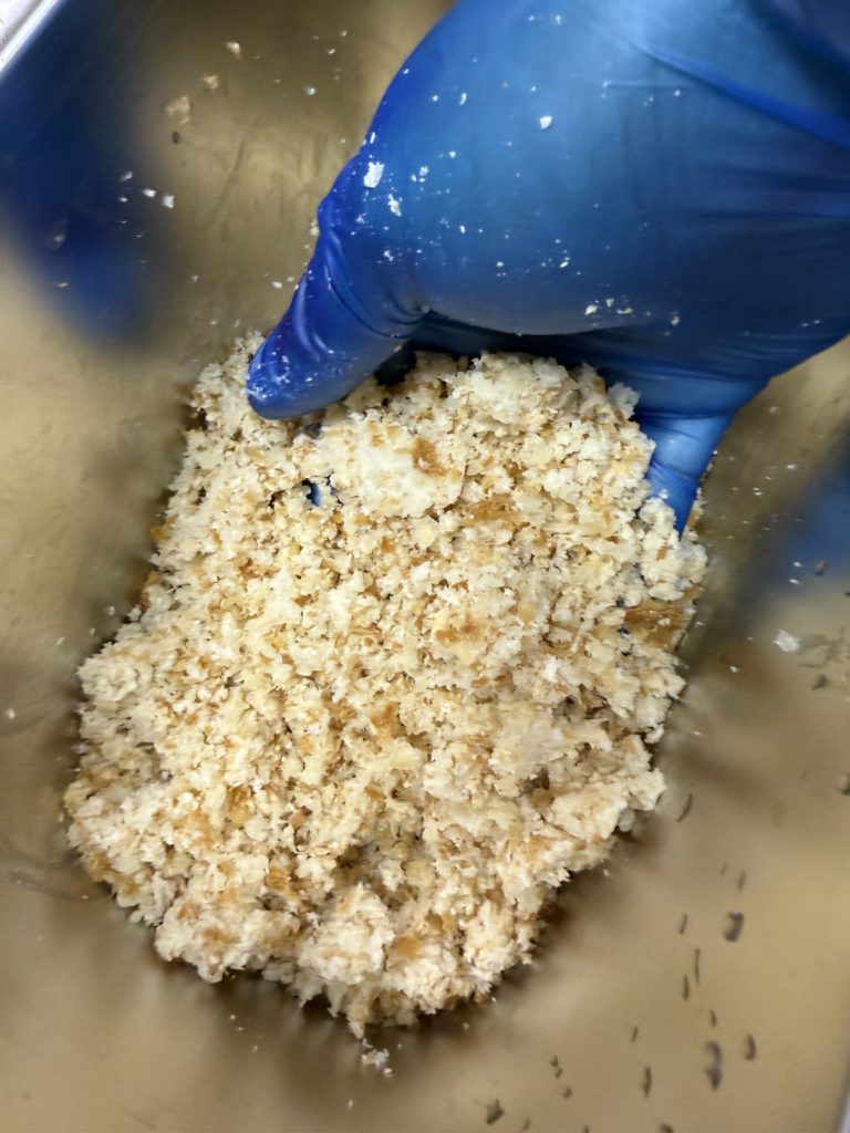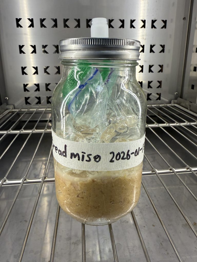 Koji (Aspergillus oryzae) is the magic wand of Japanese fermentation. Normally grown on rice, it produces enzymes that break down starches and proteins into sugars and amino acids. Here, we’re teaching it to grow on bread instead.