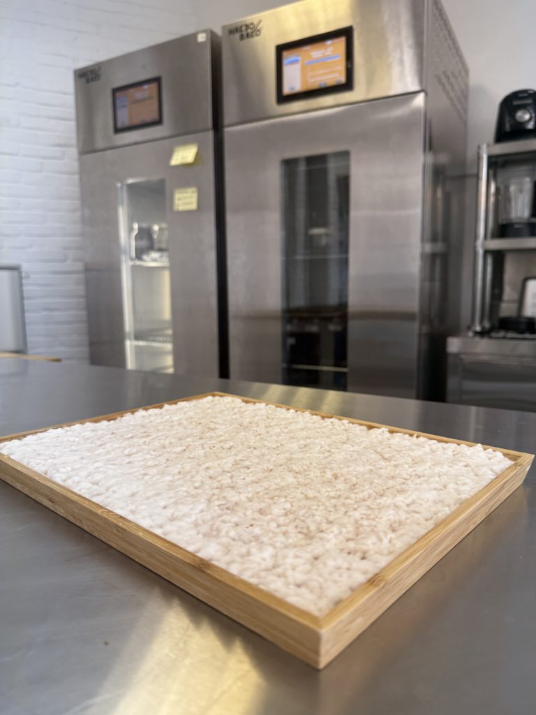 Open your chamber and inhale. That wonderful floral, almost fruity scent? That’s success. Look closely at your tray—you’ll see delicate white mould blanketing every crumb, just like traditional rice koji. The mycelium (those white threads) will have spread throughout, binding the breadcrumbs together into a cohesive cake.