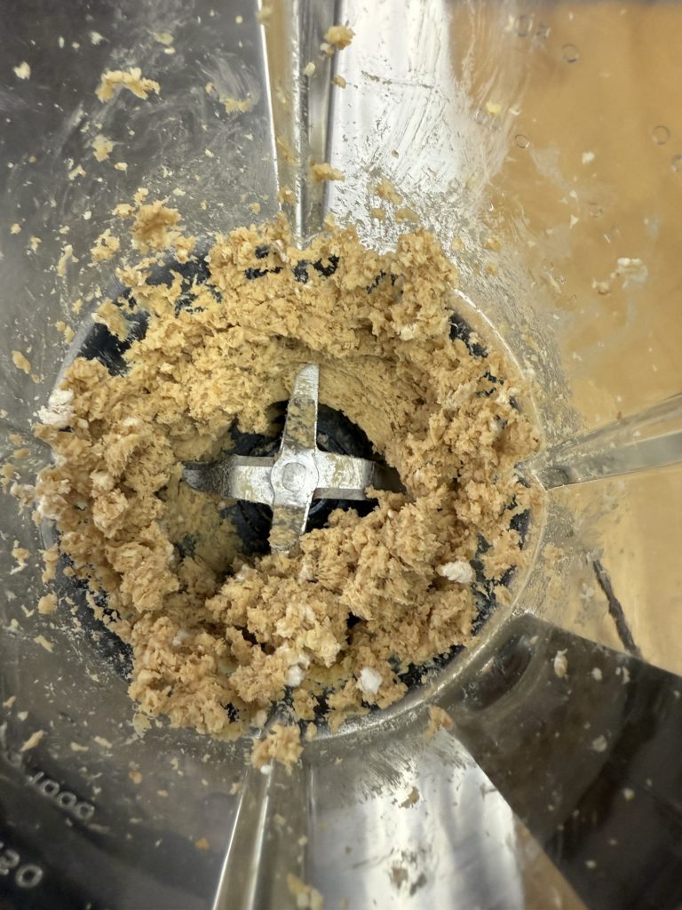 Transfer the steamed bread to your blender and pulse until you achieve fine crumbs. Do the same with your fresh rice koji—blitz until it’s a fine powder.