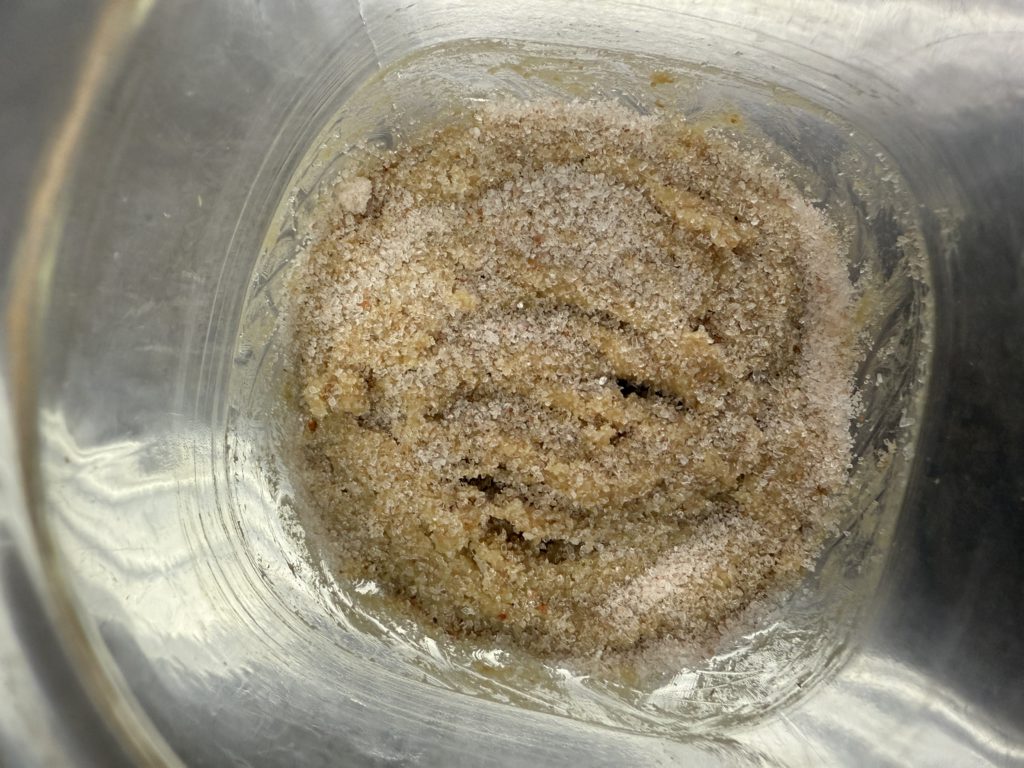 Combine your bread koji and salt in a blender. Pulse and scrape down until it forms a cohesive paste. Here’s the test: scoop out a handful and try to form it into a ball. If it holds together without crumbling, you’re perfect. If it falls apart, add water one tablespoon at a time until it binds.